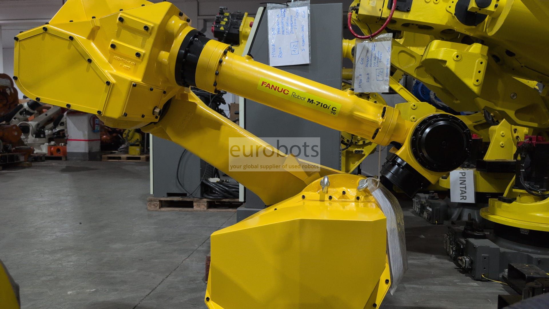 M-710iC/70 powerful 6-axis industrial robot with optimized payload capacity of 70 kg provides high shaft speeds and better repeatability, high-speed axes, reducers and precise and robust construction engines provide maximum speed and movement performance ; Suitable for a variety of applications such as palletizing, parts handling, assembly.